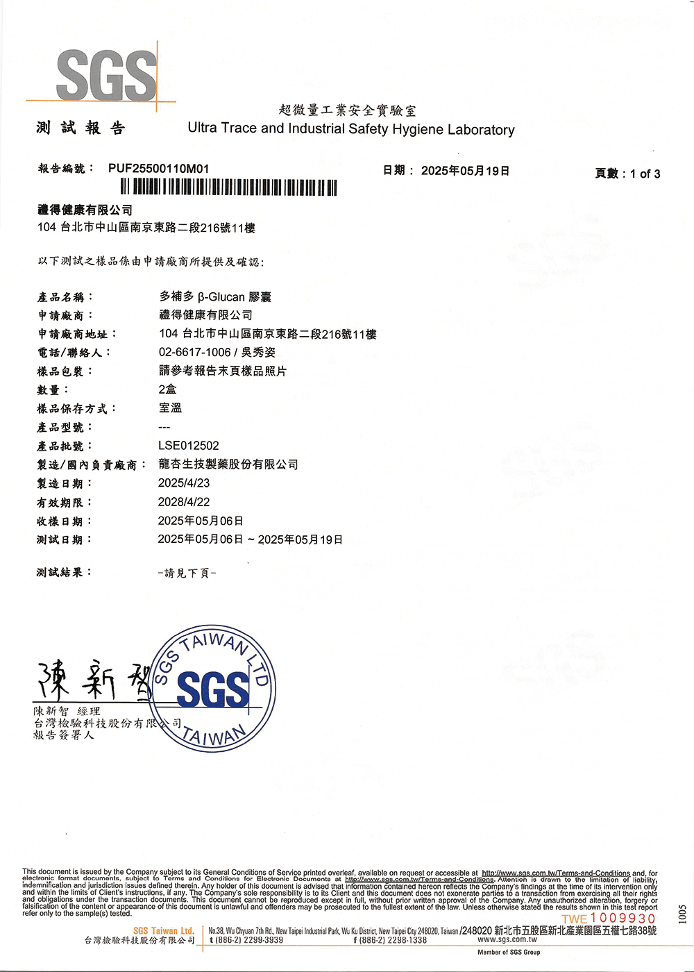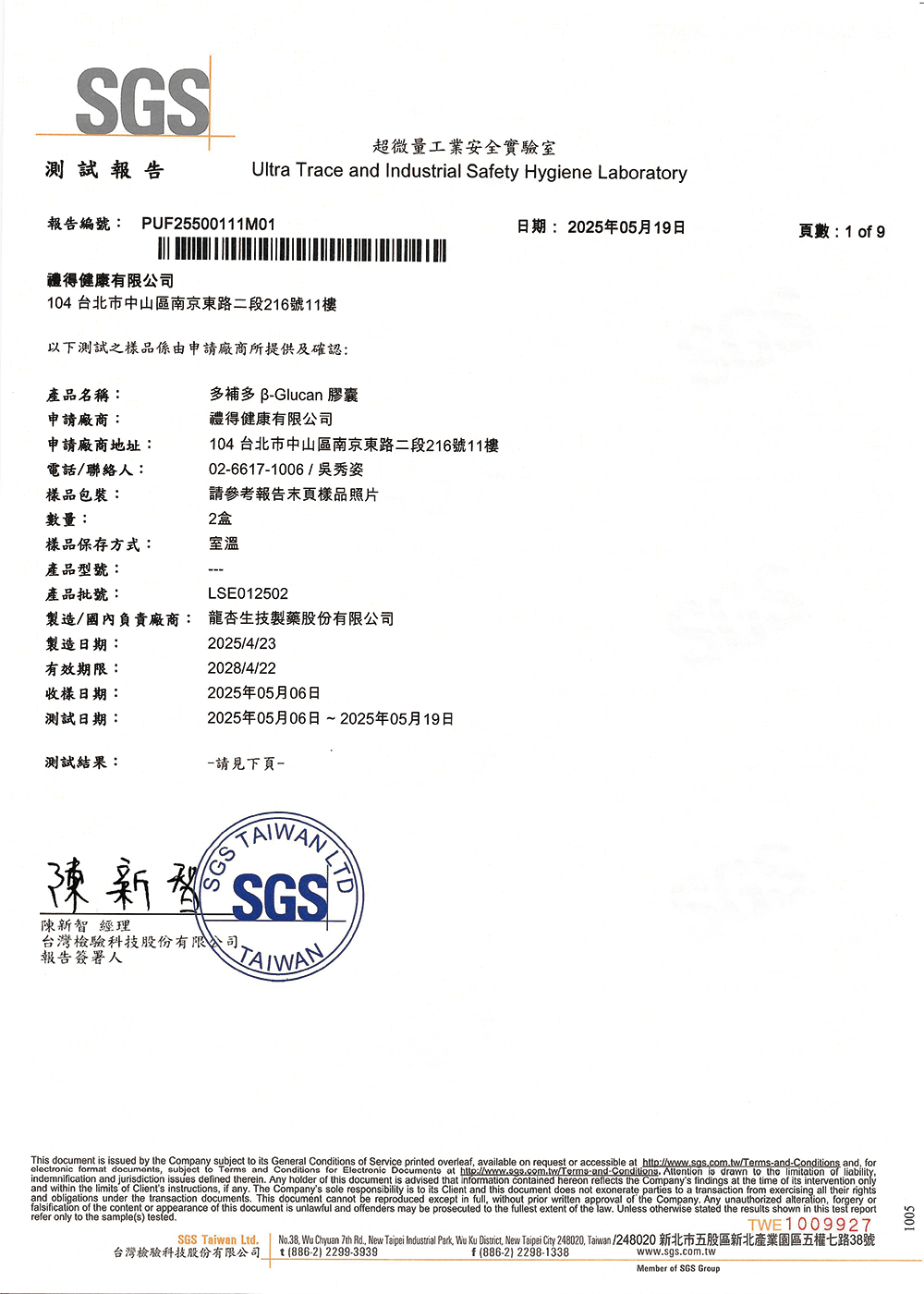 批號:LSE012502