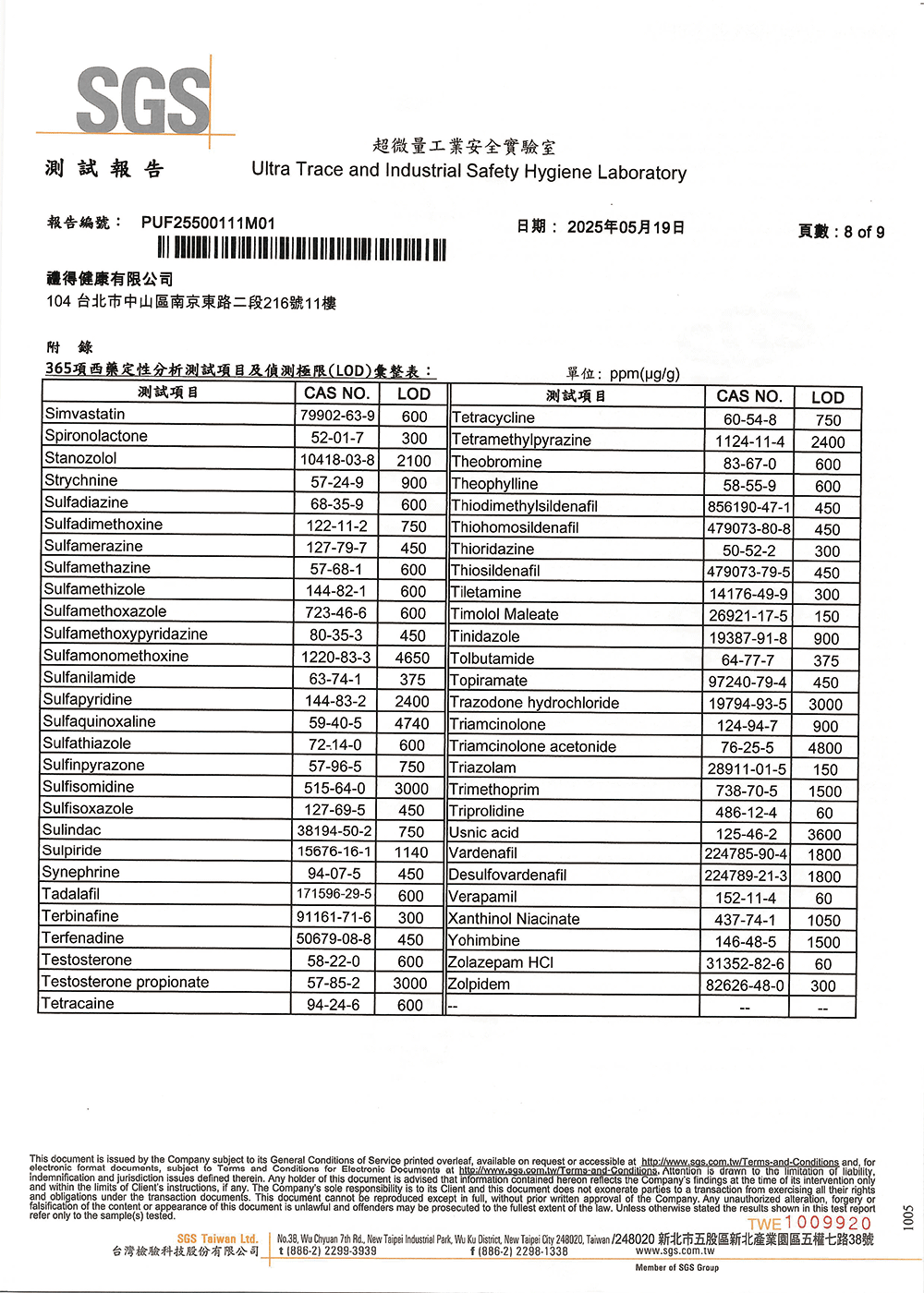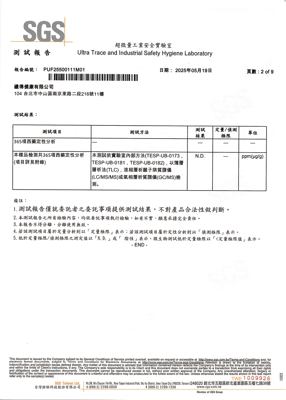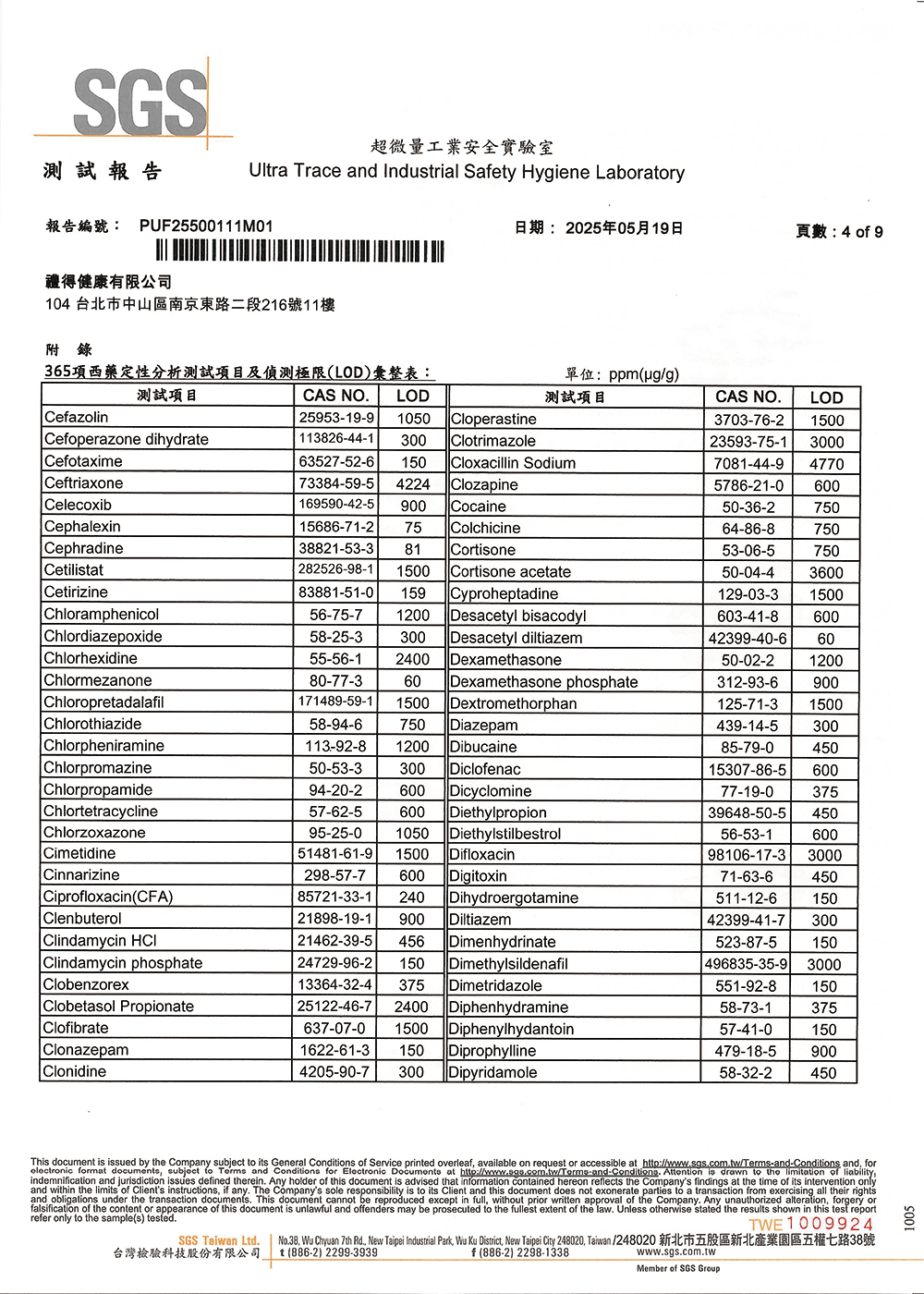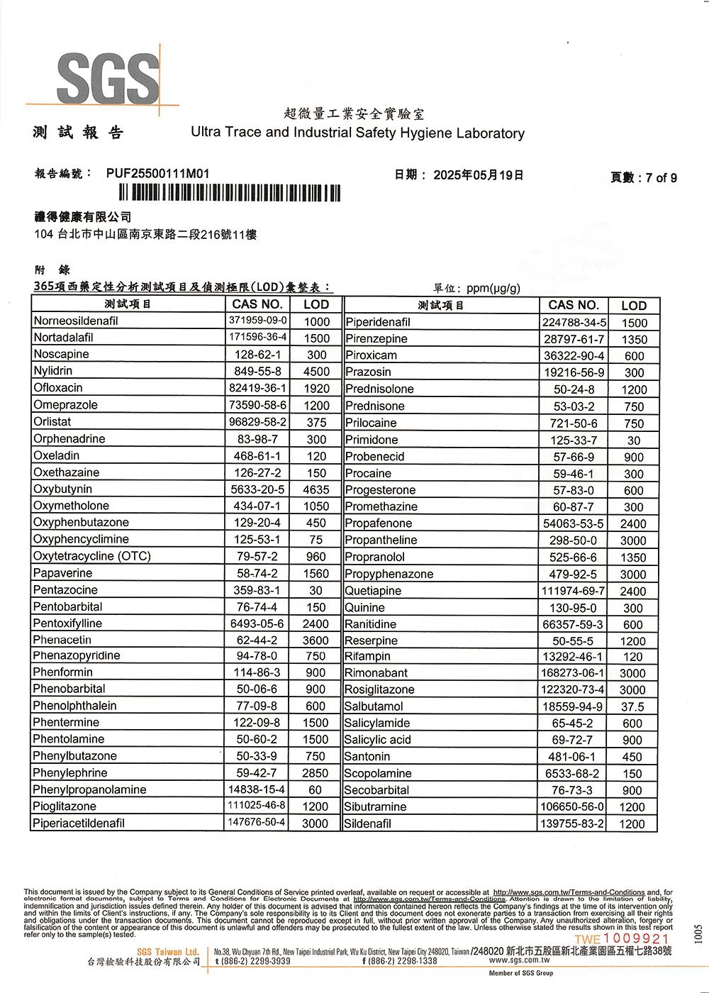 不含西藥成份檢測:365項常見西藥成份均未檢出