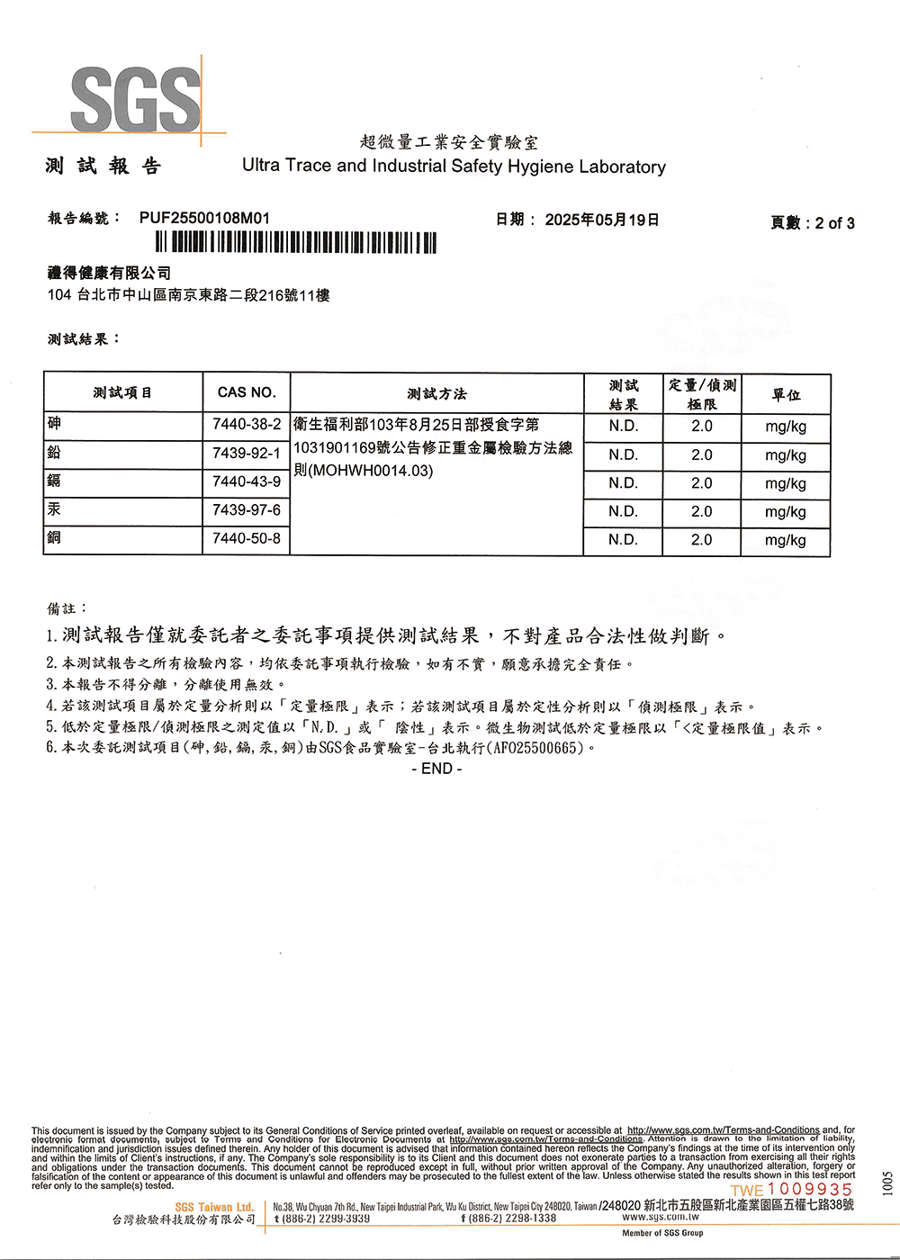 檢測項目包含:砷(As)、鉛(Pd)、鎘(Cd)、汞(Hg)、銅(Cu)。
