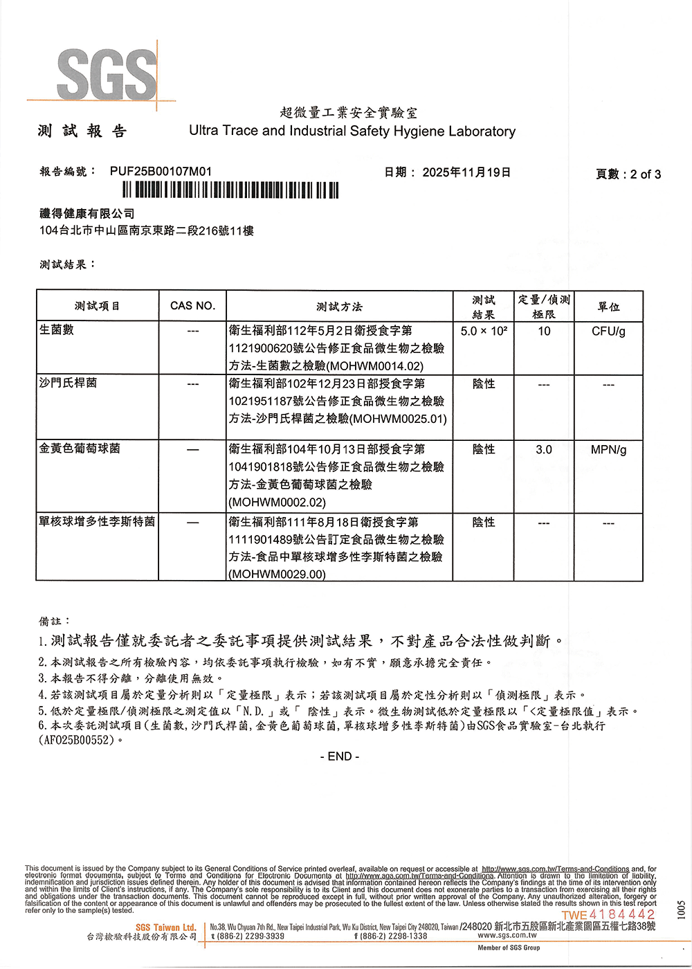 檢測項目包含:生菌數、沙門氏桿菌、金黃色葡萄球菌、單核球增多李斯特菌科。