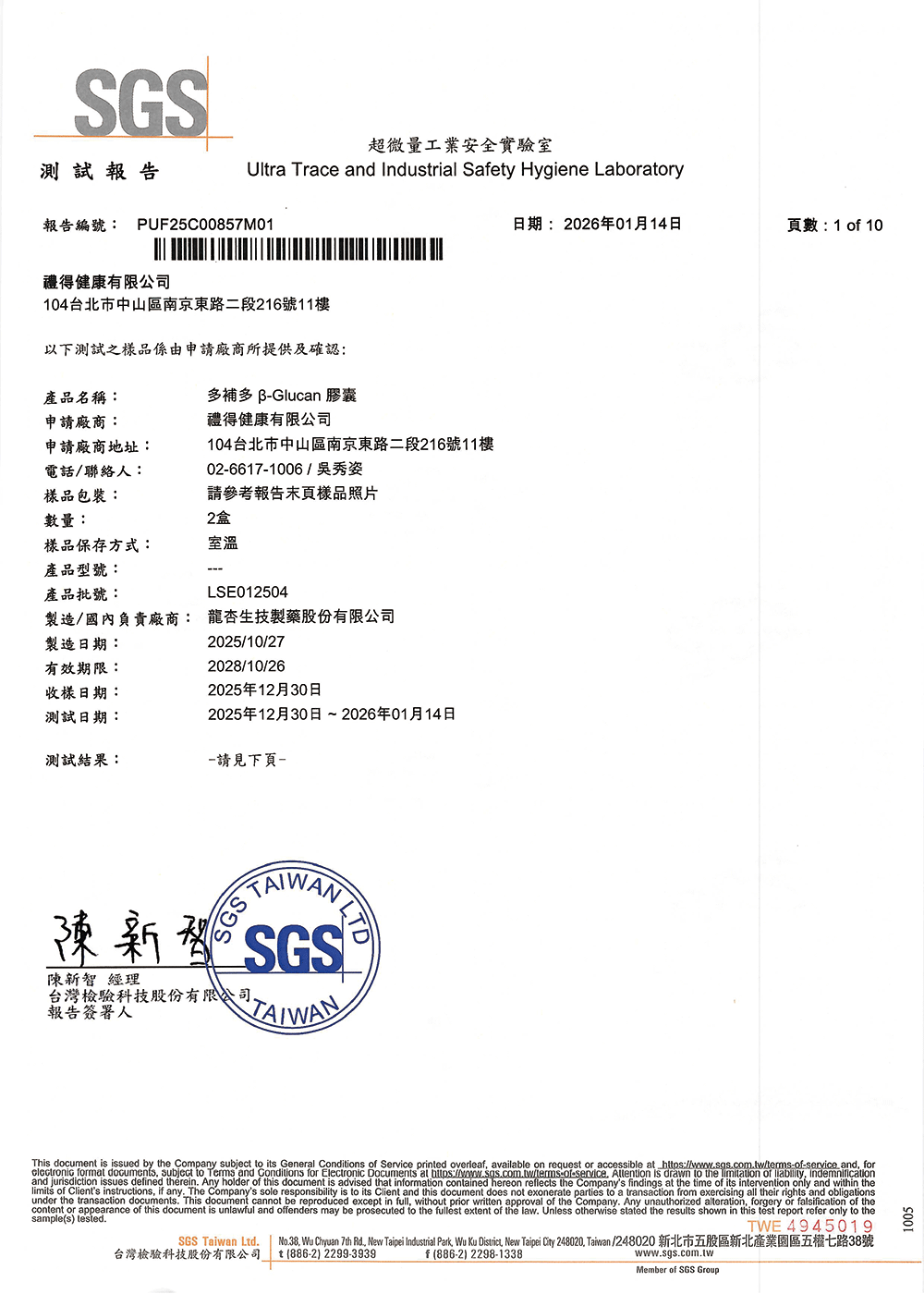 批號:LSE012504