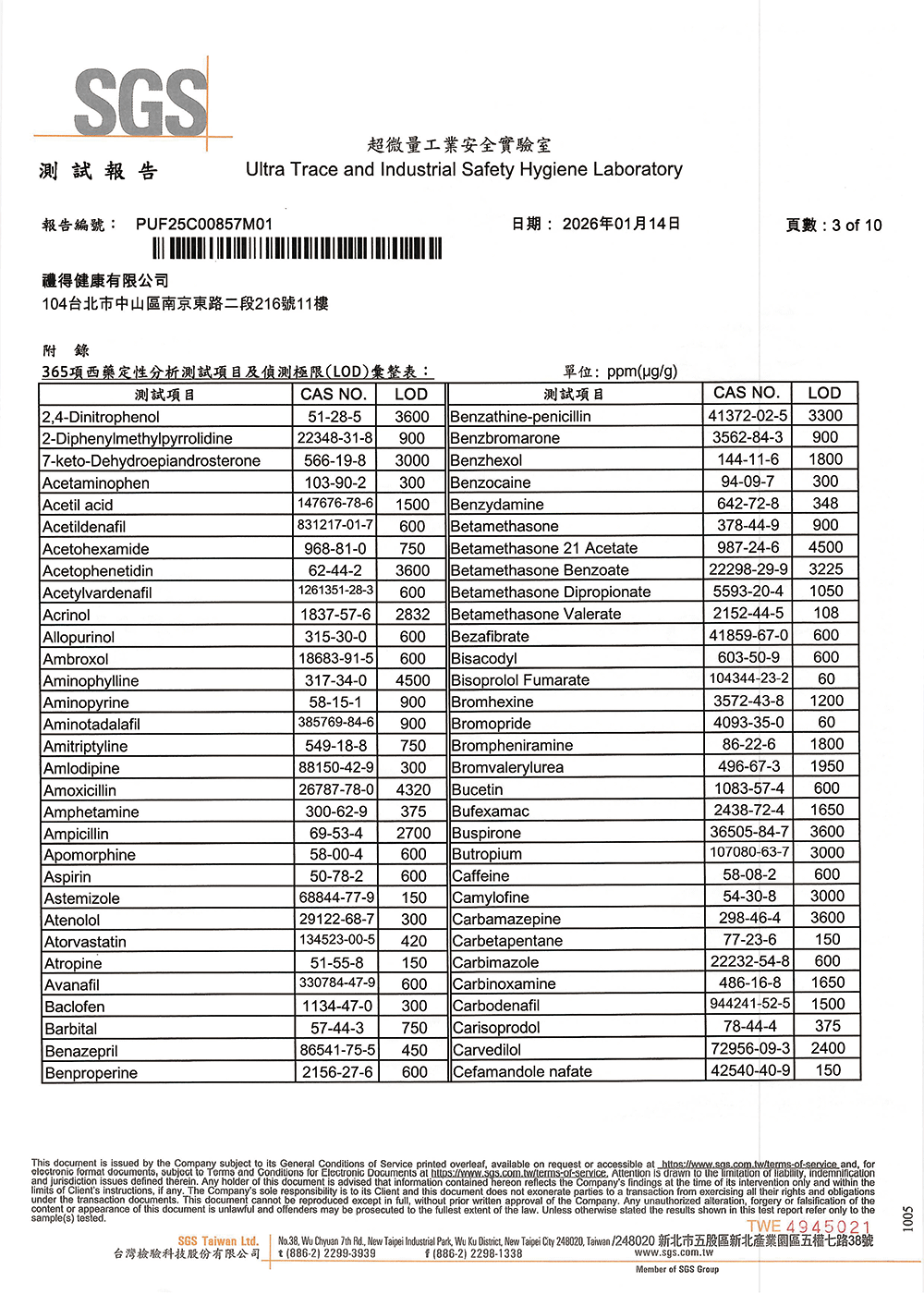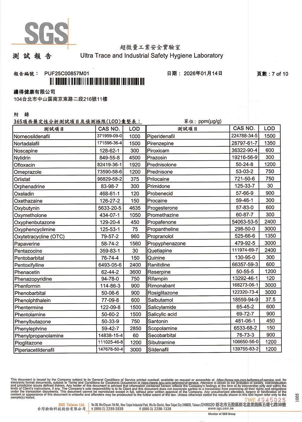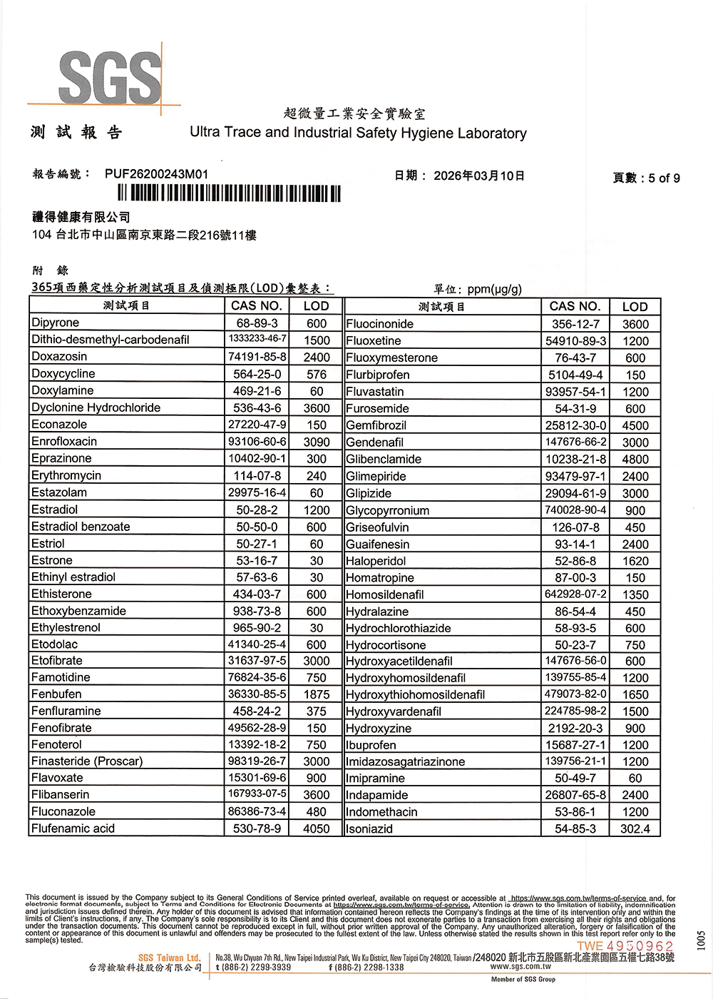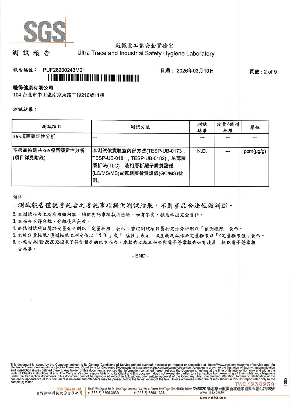 不含西藥成份檢測:365項常見西藥成份均未檢出