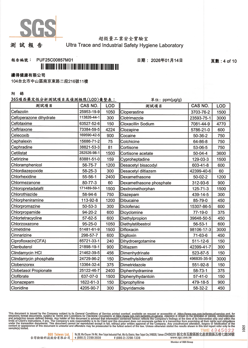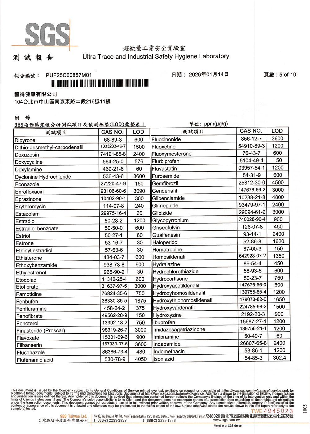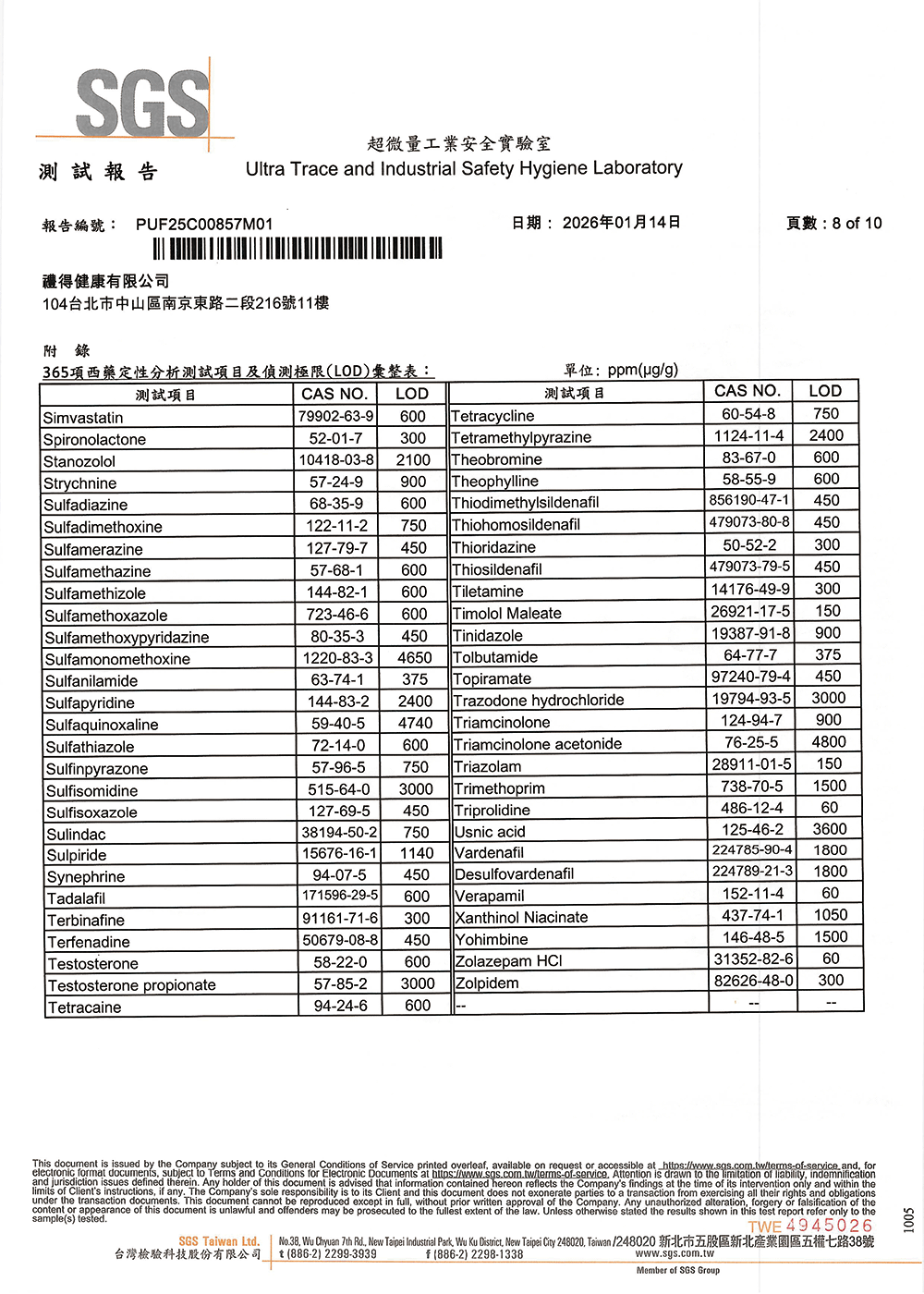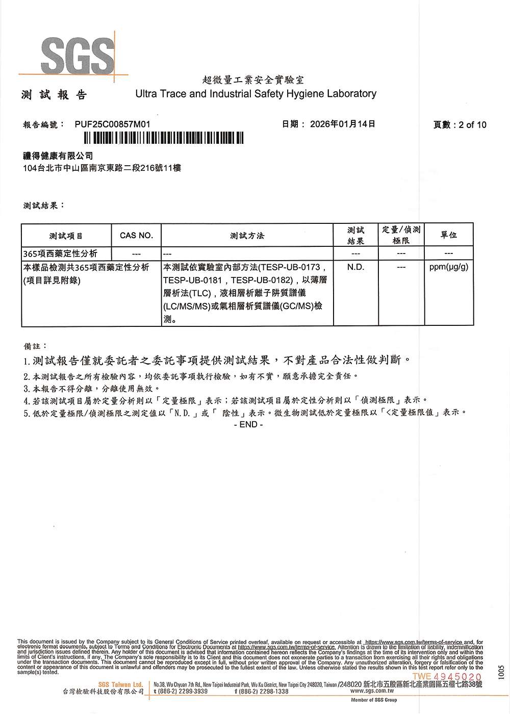 不含西藥成份檢測:365項常見西藥成份均未檢出