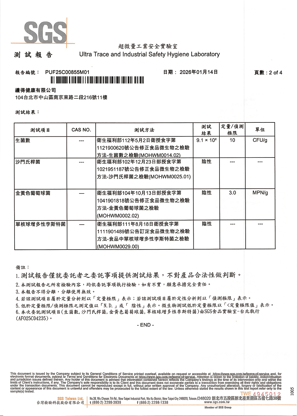 檢測項目包含:生菌數。