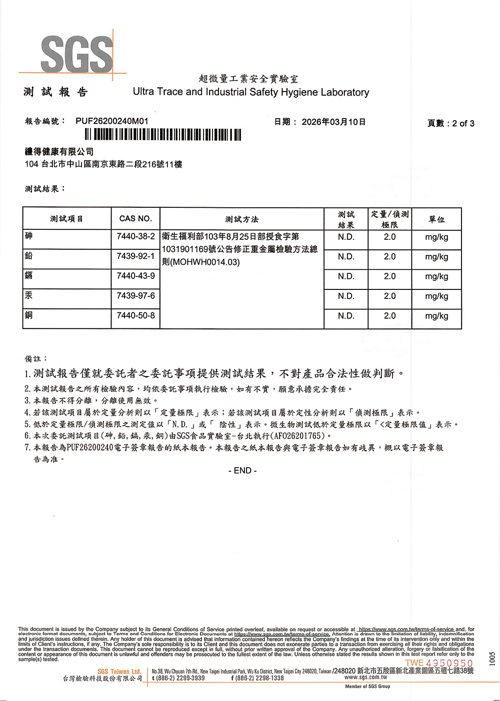 重金屬檢測:5種常見重金屬殘留均未檢出